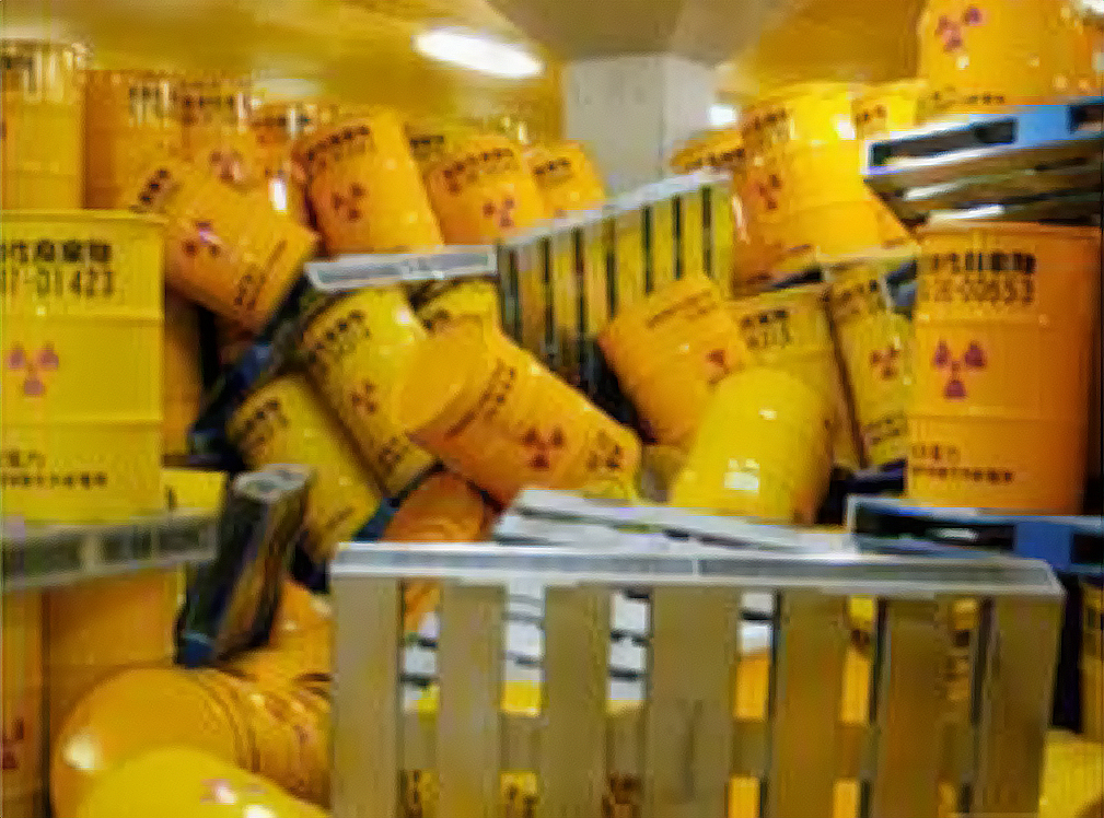 地震で崩れた放射性廃棄物ドラム缶(2007年の新潟県中越沖地震の直後)